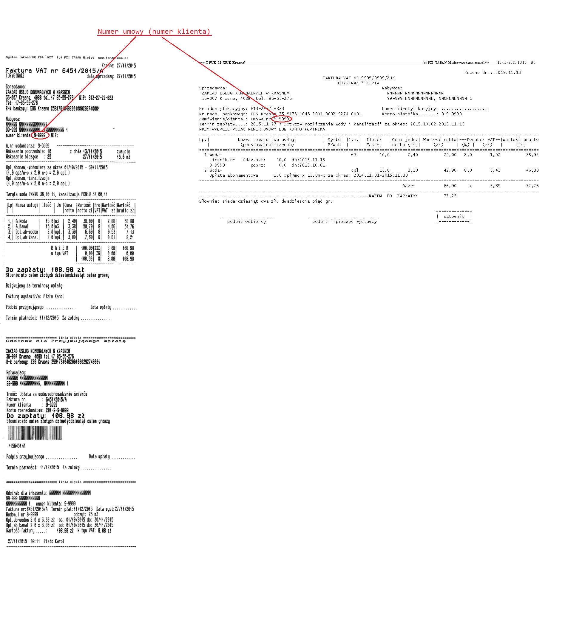 Obrazek poniżej przedstawia sposób prawidłowego odczytu nr klienta z faktur wystawianych przez Zakład oraz przez Inkasenta: